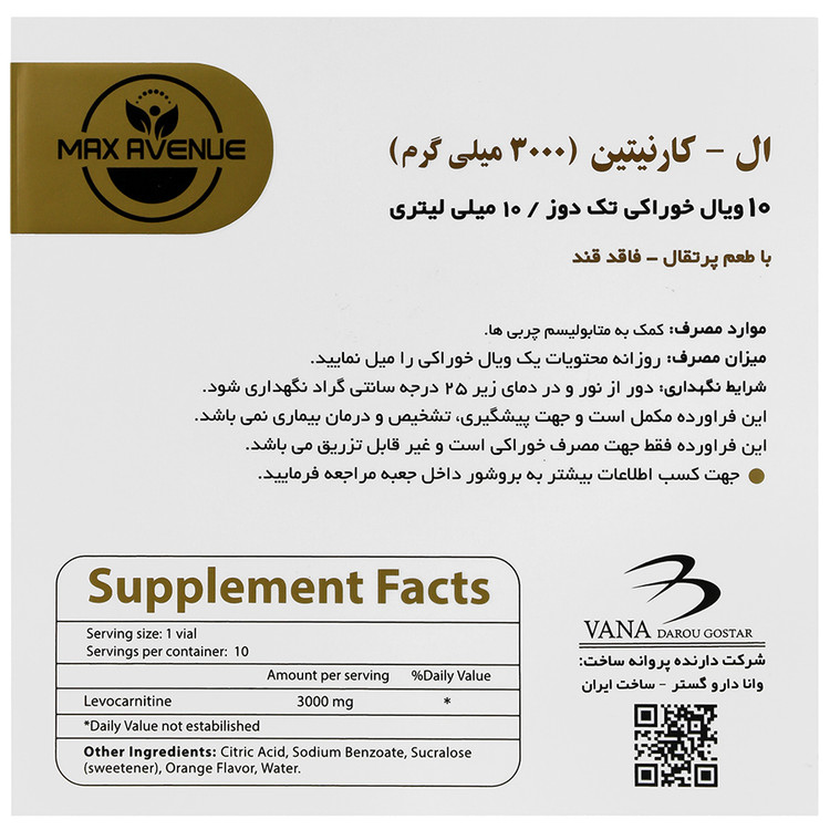 - به ازای هر ویال (10 میلی لیتر) حاوی ال کارنیتین 3000 میلی گرم