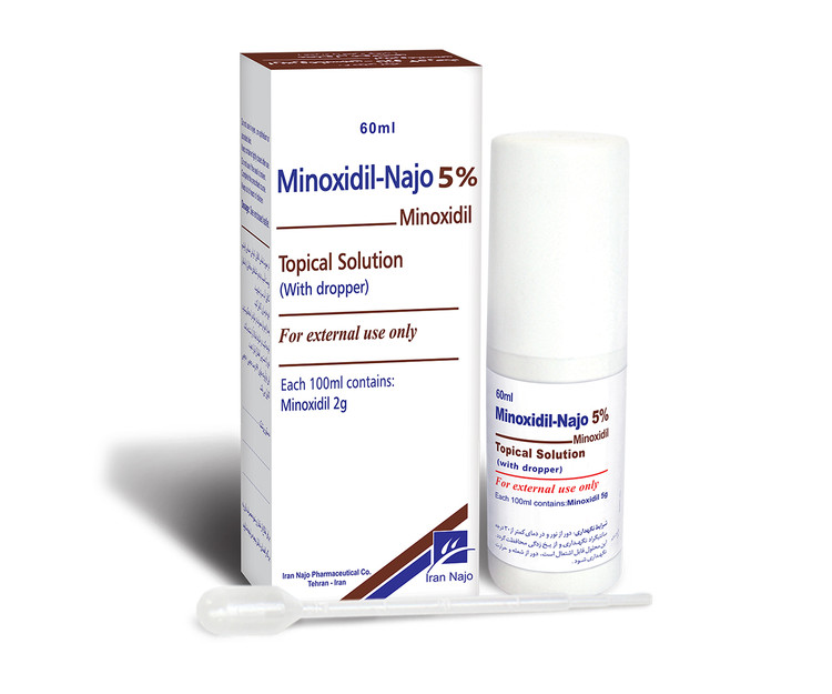 محلول ماینوکسیدیل ناژو 5% است که برای طاسی مردانه و ریزش موی آندروژنیک مردان و زنان مصرف میشود. این محلول بیشتر مناسب برای موی مردان است. مکانیسم اثر این دارو کم کردن فشار خون در نواحیای از پوست که دچار طاسی و ریزش شده از طریق گشاد کردن رگهای محیطی است. وقتی رگهای محیطی گشاد شود و جریان خون به خوبی صورت بگیرد، فولیکولهای مو تحریک شده و از حالت استراحت به حالت فعال در میآیند. ماینوکسیدیل ناژو به منظور ریزش موی آندروژنیک استفاده میشود. 2% مناسب خانم ها و 5% مناسب آقایان میباشد.