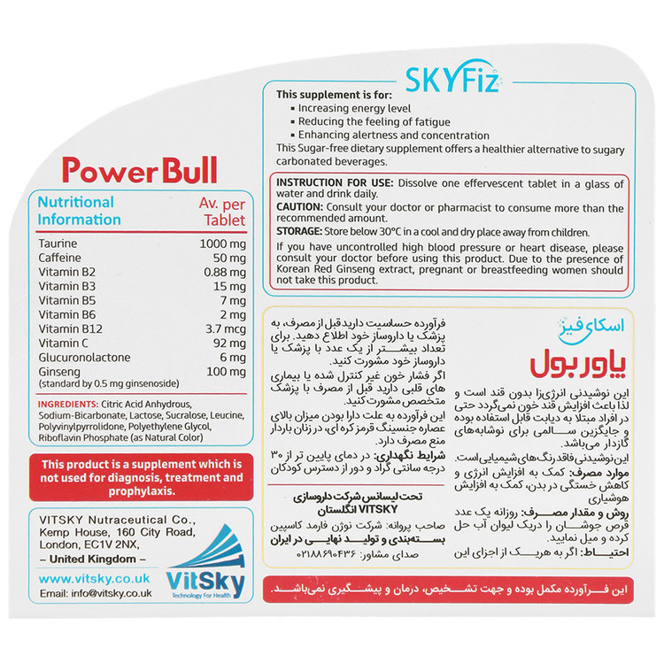 اسکای فیز پاوربول، محصولی با فرمولاسیون جدید است که با هدف به جریان انداختن یک موج سریع انرژی برای فعالیت های روزانه در زمان های مختلفی طراحی شده است. همانند: صبح های زود، سخنرانی های مهم، سفرهای طولانی مدت، ماراتن های مطالعه آخر شب، خستگی های بعد از ظهرمواد تشکیل دهنده: