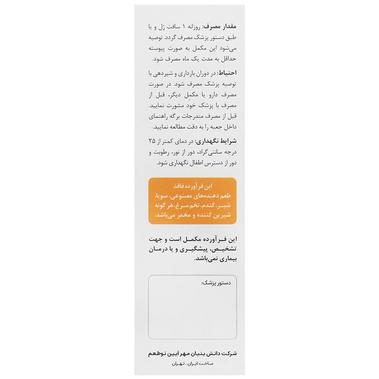 - این فرآورده مکمل است و جهت تشخیص، پیشگیری و یا درمان بیماری نمی باشد.