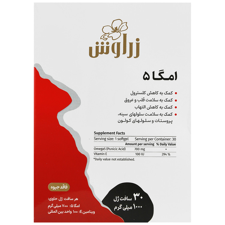 - امگا 5 پلاس ویتامین ای زراوش، حاوی امگا 5 و ویتامین E