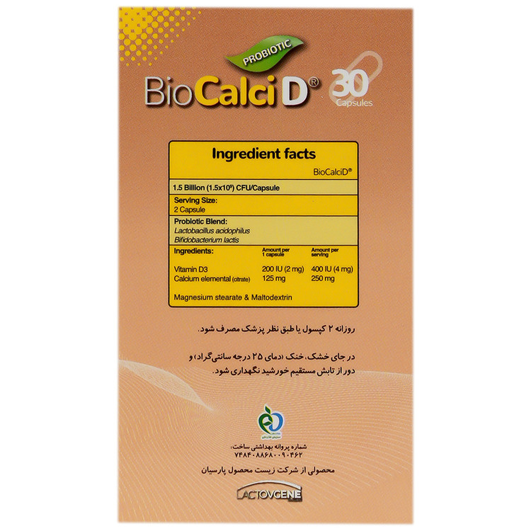 - بایو کلسی دی، حاوی پروبیوتیک، ویتامین D و کلسیم