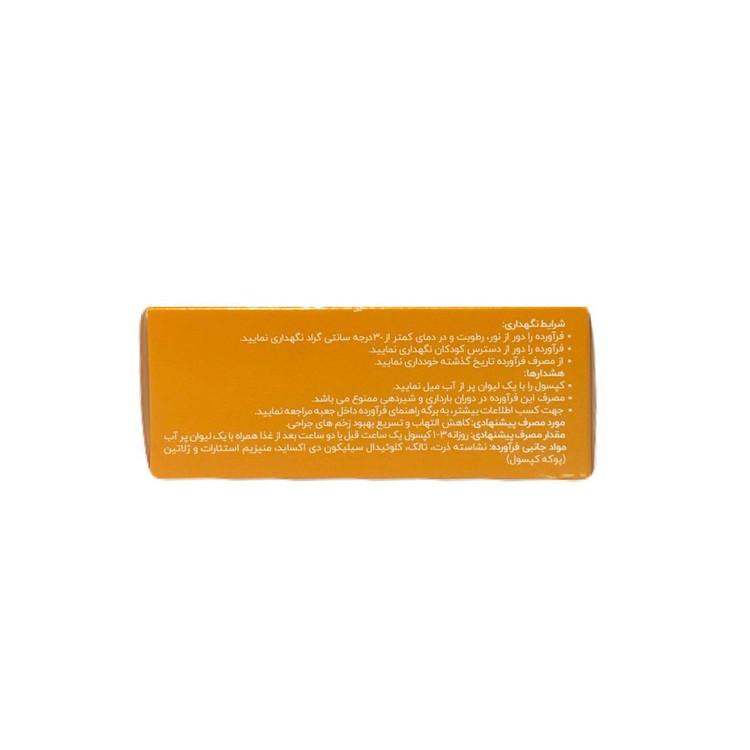 - مقدار و روش مصرف: روزانه 1 تا 3 کپسول یک ساعت قبل یا دو ساعت بعد از غذا همراه با یک لیوان پر آپ