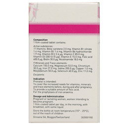 روزانه یک عدد قرص پروناتال بعد از صبحانه، که در صورت داشتن تهوع حاملگی می توان آن را پس از ناهار میل نمود.ترکیبات: