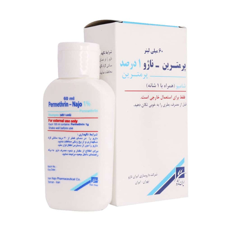 شپش سر سالانه میلیونها انسان، به خصوص کودکان در سنین مدرسه را درگیر میکند. شپش به راحتی پخش میشود؛ برای درمان آن میتوانید از شامپو پرمترین 1 درصد ایران ناژو استفاده نمایید. هر 100 میلی از این شامپو حاوی 1 گرم ماده پرمترین بوده که میتوان گفت این شامپو بهترین شامپو ضد شپش است. شما حتی با یک بار استفاده از شامپو ضد شپش پرمترین ایران ناژو میتوانید به نتیجه مطلوب دست پیدا کنید. این محصول سر را از شپش پاکسازی نموده و التهاب و خارش پوست سر را از بین میبرد. همراه این محصول یک شانه دانه ریز وجود دارد.