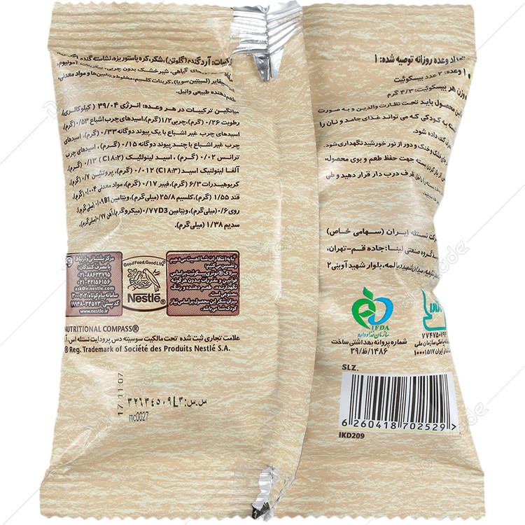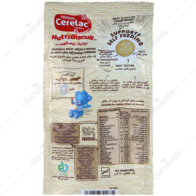 - نوتری بیسکویت، غنی شده با آهن و ویتامین D