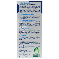 عوارض جانبی: در صورت استفاده از مقدار توصیه شده هیچگونه عوارض جانبی مشاهده نشده است مگر در کسانی که نسبت به مواد بکار رفته در فراورده حساسیت داشته باشند. موارد عدم مصرف و نکات قابل توصیه: افرادی که به، دانهی به حساسیت دارند از مصرف فراورده خودداری نمایند.