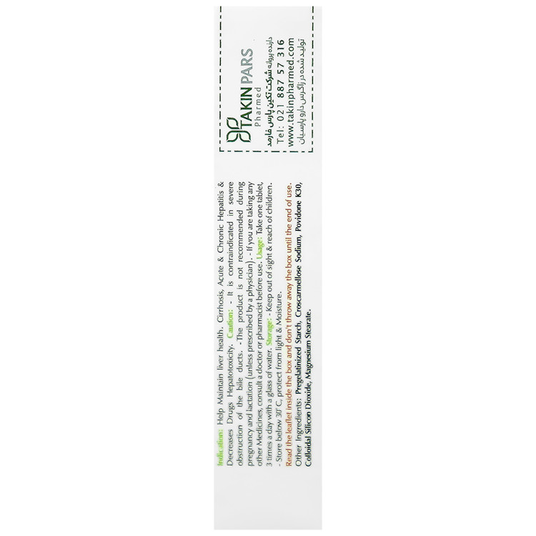 - هر قرص حاوی عصاره خشک خار مریم (معادل 140 میلی گرم سیلیمارین)