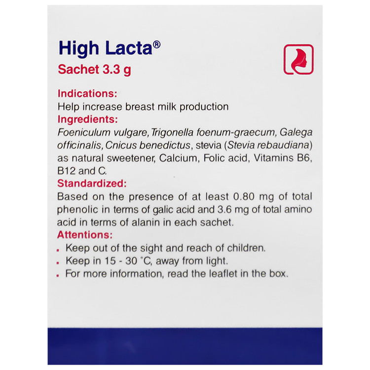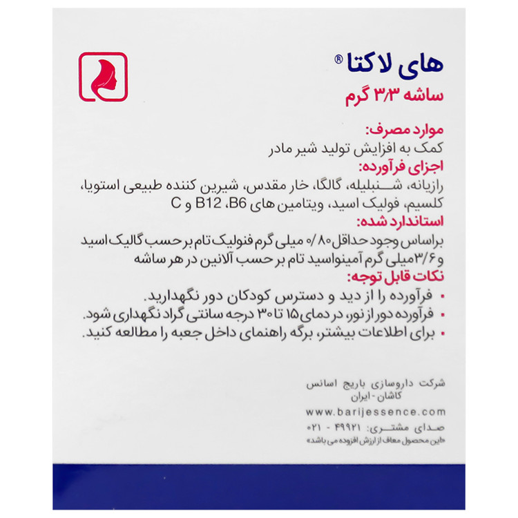 - اجزای فراورده: عصاره خشک بذر رازیانه، عصاره خشک بذر شنبلیله، برگ گالگا، اندام هوایی خار مقدس با شیرین کننده طبیعی استویا، دارای کلسیم، فولیک اسید، ویتامین های B6، B12 و C