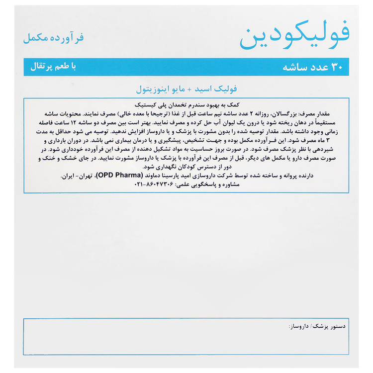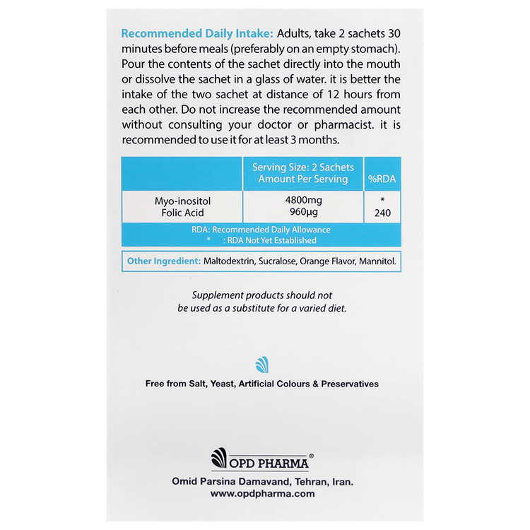 - حاوی 2400 میلیگرم مایو-اینوزیتول و 480 میکروگرم اسید فولیک