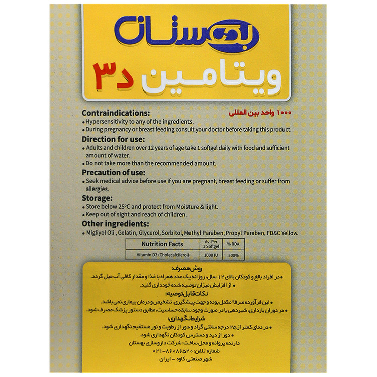 | ویتامین د3 ( کوله کلسیفرول ) | Vitamin D3 ( Cholecalciferol ) | 1000 IU | 500 |