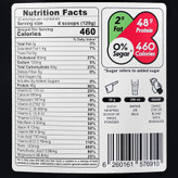 - ترکیبات: پروتئین وی کنسانتره، مالتودکسترین، مجموعه ویتامین ها و مینرال، کلسیم سیترات، پودر کاکائو و طعم دهنده شکلات