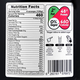 - حاوی 460 کالری، 48 گرم پروتئین، 64 گرم کربوهیدرات، 2 گرم چربی