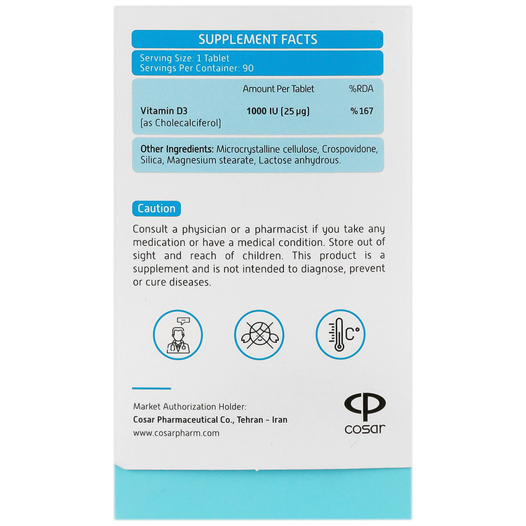 - هر قرص حاوی 1000 واحد ویتامین د3