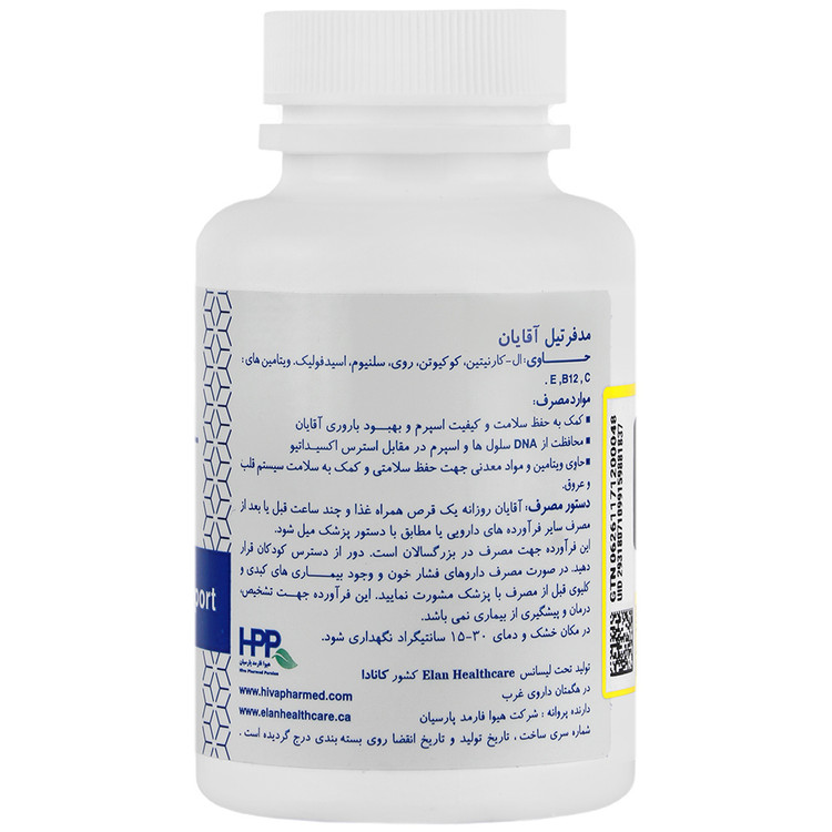 - حاوی: ال-کارنیتین، کوکیوتن، روی، سلنیوم، اسید فولیک، ویتامین های C ،B12 ،E