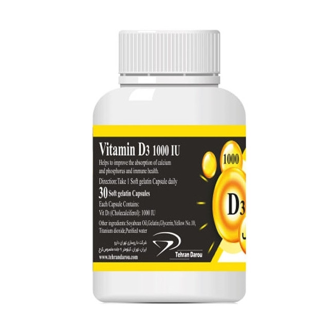 ویتامین د۳ تهران دارو ۱۰۰۰ واحد تهران دارو یک ویتامین محلول در چربی است که در بافت چربی ذخیره می شود. این ویتامین به عنوان ویتامین نور آفتاب شتاخته شده است. زیرا بعد از در معرض آفتاب قرار گرفتن در بدن تامین میشود. بنابراین شما می توانید این ویتامین را بصورت دارو دریافت کنید زیرا منابع غذایی حاوی این ریزمغذی محدود می باشد.در واقع شکل تجویزی این ویتامین بصورت قرص ویتامین دی با مقدار ۱۰۰۰ واحد تعریف میشود. این محصول به بدن شما برای جذب کلسیم و فسفر کمک میکند که هر دو این عناصر برای تشکیل استخوان ضروری هستند.