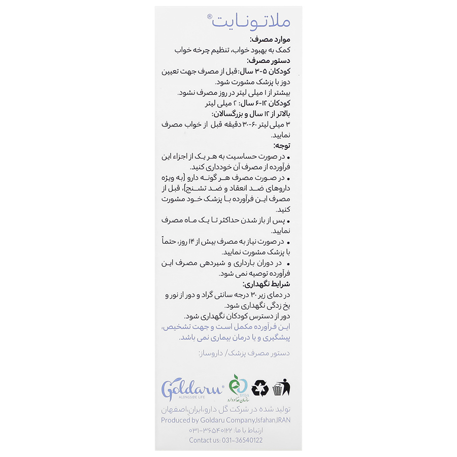 کودکان 5-3 سال: قبل از مصرف جهت تعیین دوز با پزشک مشورت شود. بیشتر از 1 میلی لیتر در روز مصرف نشود.