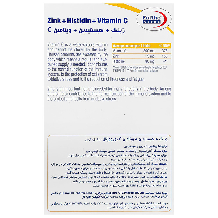 زینک و هیستیدین و ویتامین سی یوروویتال