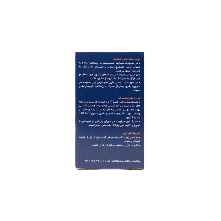 - این فرآورده جهت پیشگیری، تشخیص و درمان نیست.