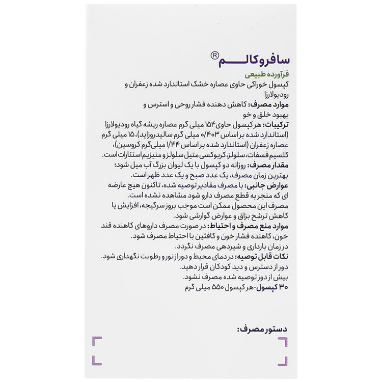 | زعفران Saffron (Crocus sativus) | زعفران Saffron (Crocus sativus) | 15 mg | ** |