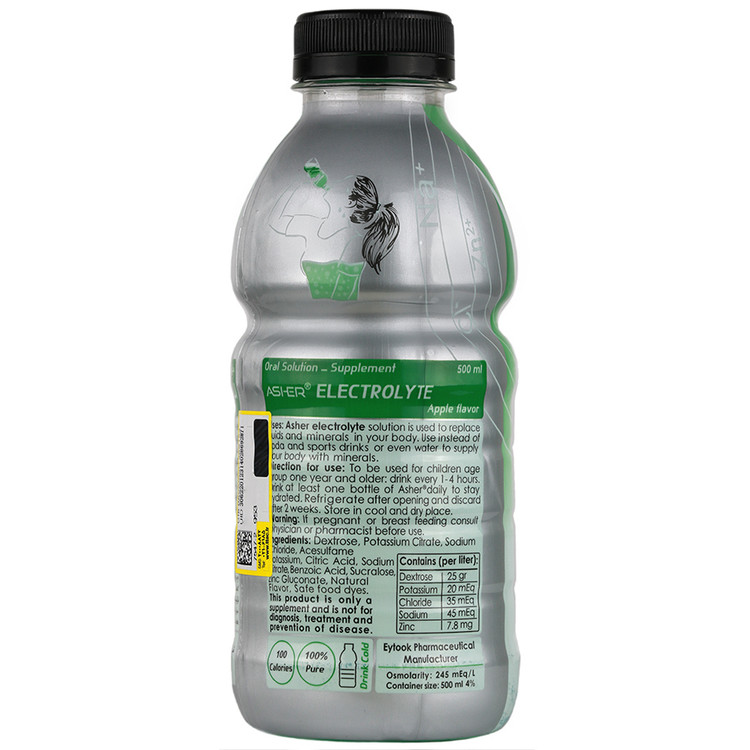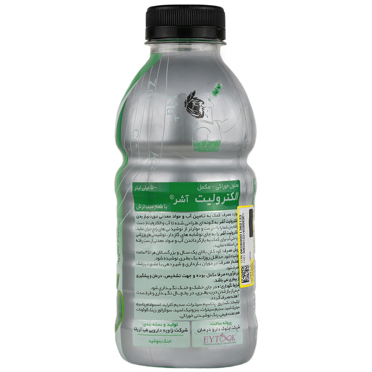 - محلول خوراکی الکترولیت آشر ترکیب مایع حاوی آب، پتاسیم، کلر، سدیم، زینک و دکستروز