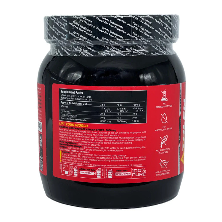 کراتین مونوهیدرات اتلن به عنوان یک ماده انرژیزا شناخته میشود که به سرعت در عضلات ذخیره شده و به بدن در حفظ انرژی در طول تمرینات شدید کمک میکند.
