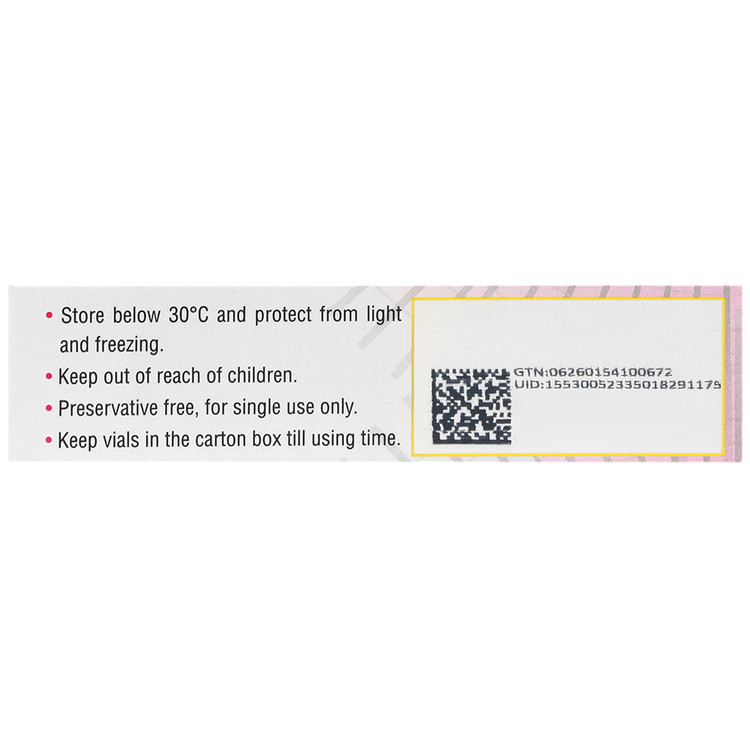 - هشدار: - در صورتی که از لنزهای چشمی استفاده می کنید قبل از استفاده از قطره، آن ها را از چشم خارج کنید. - این قطره تا زمان باز شدن استریل است. در تمیز نگه داشتن قطره تا زمان مصرف دقت کنید. - این قطره در ویال های تک دوز تولید شده و بایستی بلافاصله بعد از مصرف دور انداخته شود.