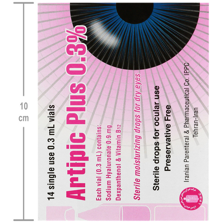 قطره آرتیپیک پلاس حاوی سدیم هیالورونات است که باعث ماندگاری رطوبت طبیعی چشم می شود. وجود دکسپانتنول باعث حفظ رطوبت در سطح چشم به مدت طولانی تر می شود. ویتامین ب12 ضمن حفظ رطوبت چشم باعث تحریک آنژیوژنز می گردد.