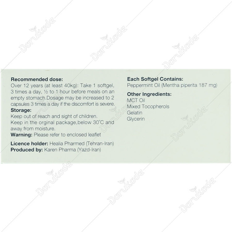 - هر کپسول نرم حاوی روغن نعنا فلفلی 187 میلی گرم