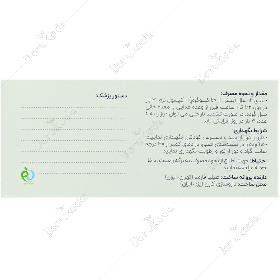 افراد بالای 12 سال (بیش از 40 کیلوگرم): 1 کپسول نرم، 3 بار در روز، 1/2 تا 1 ساعت قبل از وعده غذایی با معده خالی میل گردد.
