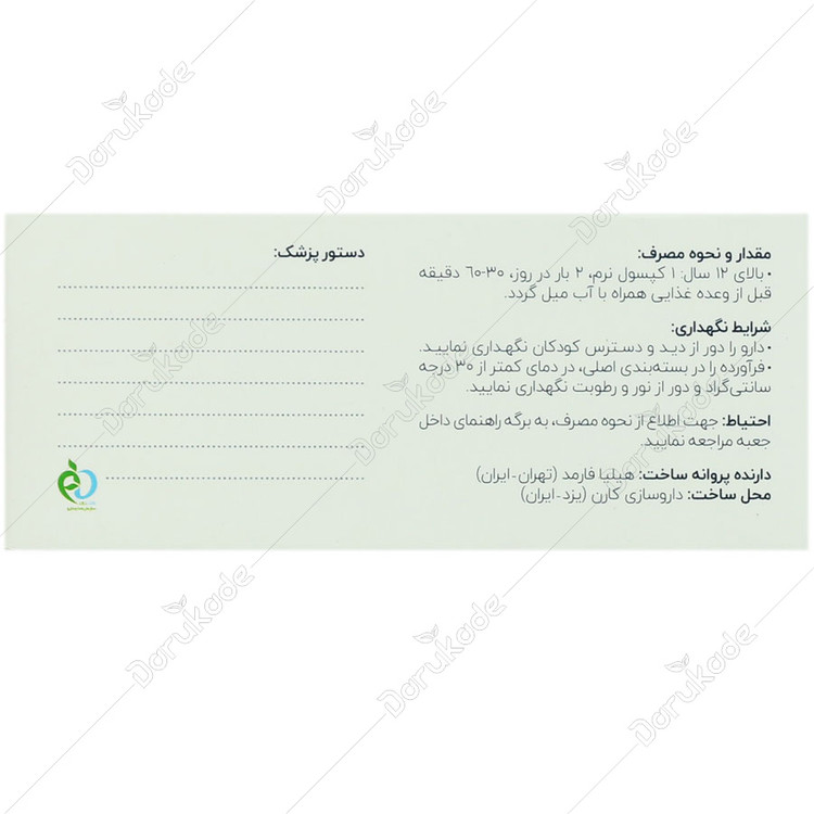 - مواد جانبی: روغن MCT، ژلاتین، میکس توکوفرول و گلیسیرین