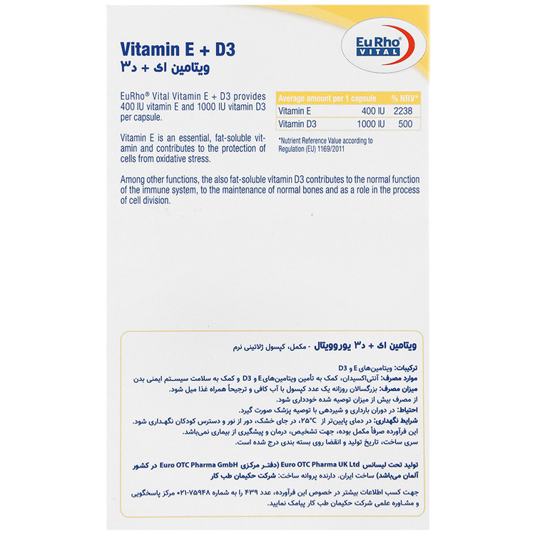 - ویتامین ای و د3 یوروویتال، کمک به تامین ویتامین D و E مورد نیاز بدن