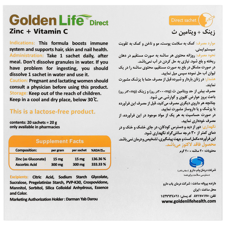 روزانه محتوی هر ساشه به صورت مستقیم در دهان ریخته و بلع شود.