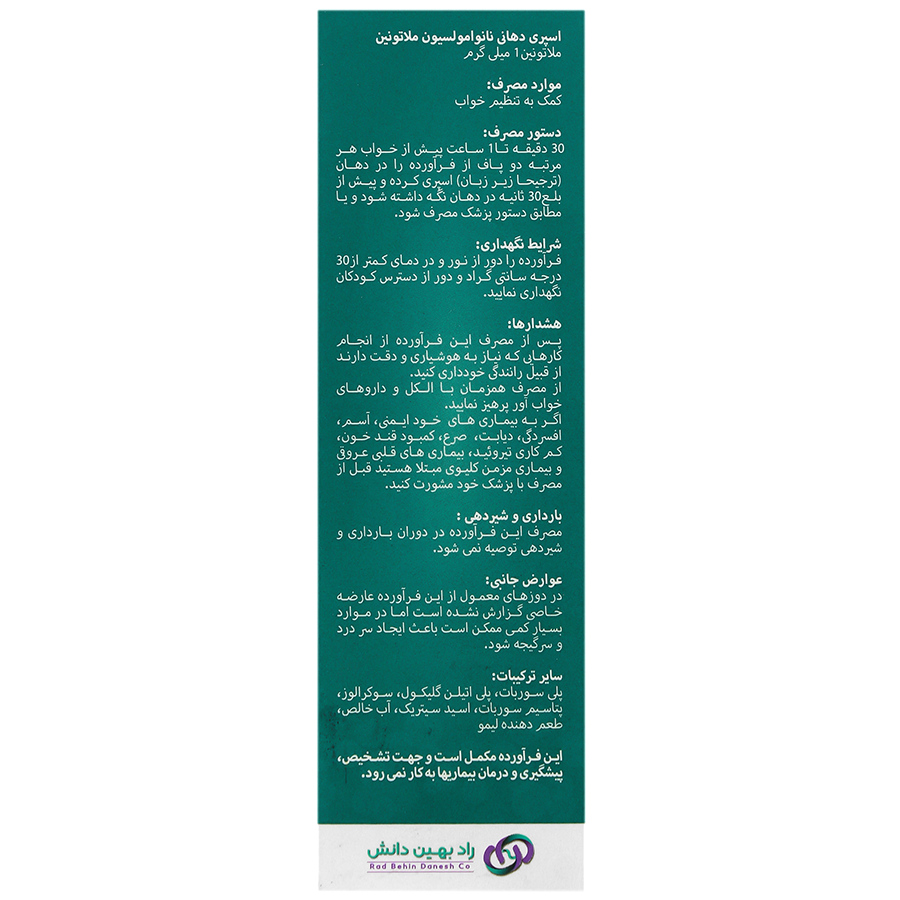 اسپری دهانی نانوامولسیون ملاتونین راد بهین دانش