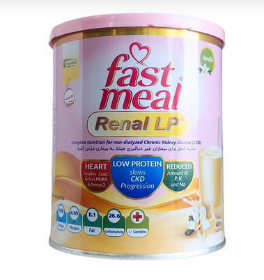 پودر فست میل رنال ال پی یک تغذیه کامل برای بیماران غیر دیالیزی مبتلا به بیماری مزمن کلیوی (CKD) است. این محصول به تامین انرژی، ویتامین ها و مواد معدنی مورد نیاز بدن، بدون افزایش پروتئین کمک می کند. فست میل رنال با داشتن چربی های مفید باعث سلامت قلب و عروق می شود. همچنین به عنوان یک وعده کامل، نقش مهمی در حفظ وزن و متابولیسم بدن دارد. این محصول برای نیازهای غذایی روزانه بیماران CKD کافی است و فرمولاسیون آن به گونه ای است که مواد مغذی به سرعت جذب بدن می شود.