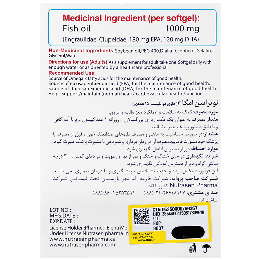- در صورت حساسیت به ماهی و مصرف داروهای ضد انعقاد خون، قبل از مصرف با پزشک خود مشورت فرمایید.