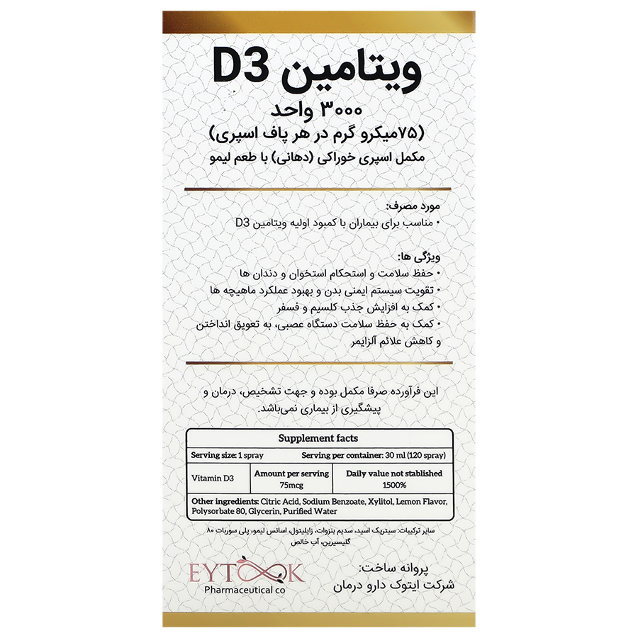| ویتامین د3 | Vitamin D3 | 75 mcg | 1500 |
