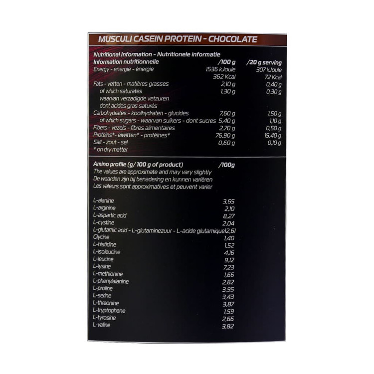 پودر پروتئین کازئین ماسکالی غنی از پروتئین ایزوله شیر به صورت کازئین بوده و در طول شب سبب بازسازی و رشد عضلات بعد از فعالیتهای روزانه میشود. این محصول آهسته و به تدریج جذب میشود و علاوه بر تامین بخشی از پروتئین مورد نیاز بدن به حفظ سلامت عضلات و عضله سازی کمک میکند. کازئین یک پروتئین لبنی دیر هضم است که مردم اغلب آن را به عنوان مکمل مصرف میکنند. کازئین اسیدهای آمینه را به آرامی آزاد میکند و افراد اغلب آن را قبل از خواب مصرف میکنند تا به ریکاوری و کاهش تجزیه عضلات در هنگام خواب کمک کند.
