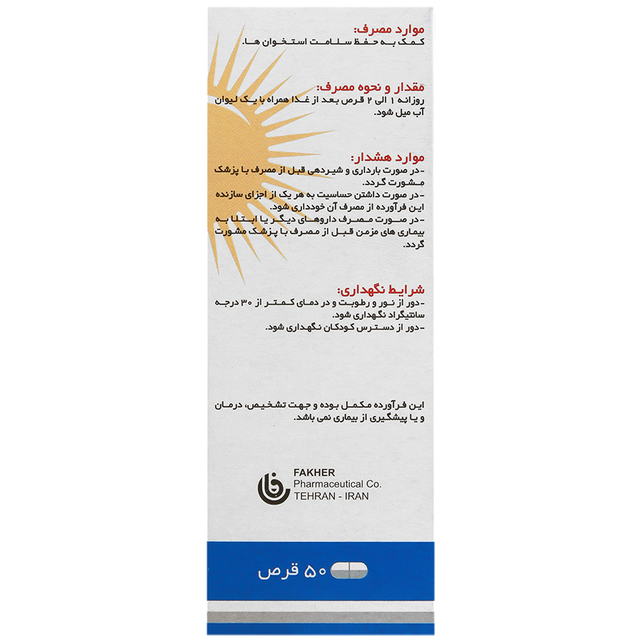 روزانه 1 الی 2 قرص بعد از غذا همراه با یک لیوان آب میل شود.