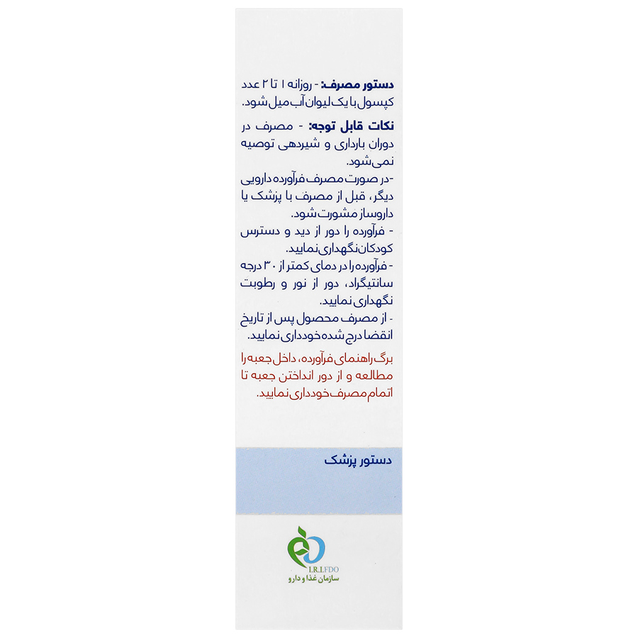 روزانه 1 تا 2 عدد کپسول با یک لیوان آب میل شود.