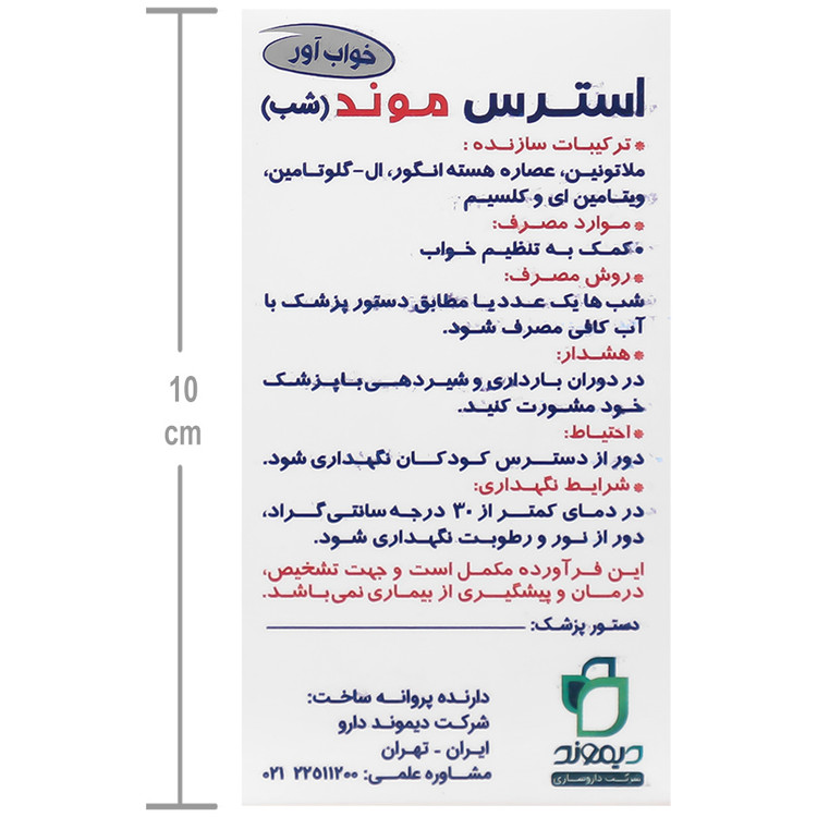 - این محصول برای مصرف شبانه طراحی شده است. پس از مصرف این محصول، از انجام فعالیت هایی که نیاز به هوشیاری بالا دارند مانند رانندگی بپرهیزید.