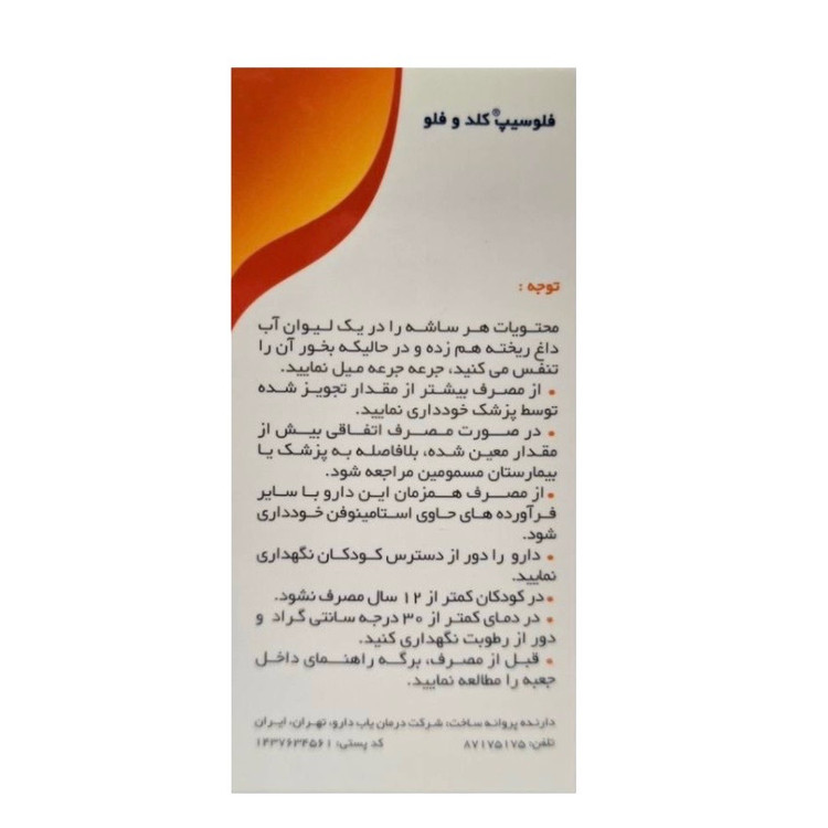 - حاوی استامینوفن و فنیل افرین هیدورکلراید