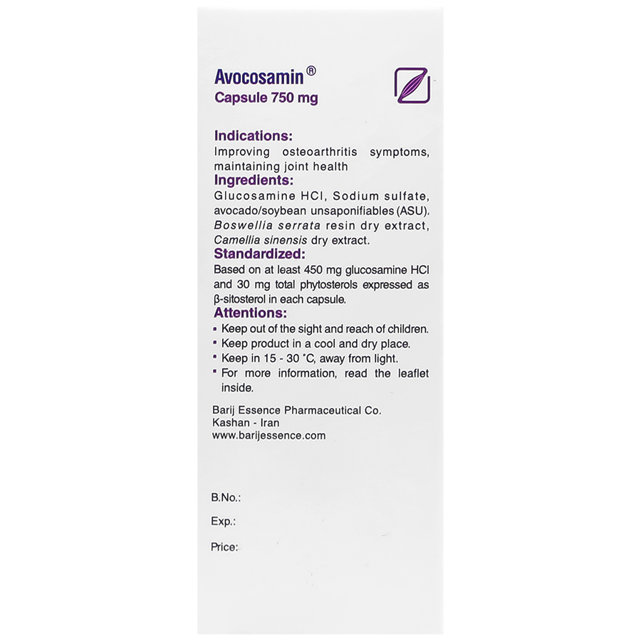 آووکوزامین 750 میلی گرم 30 عدد باریج اسانس