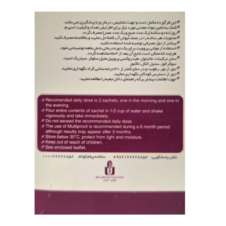 ویتامینها و مواد معدنی موجود در مولتی پروویت به تقویت سیستم ایمنی، بهبود عملکرد متابولیک و حفظ سلامت عمومی بدن کمک میکنند.