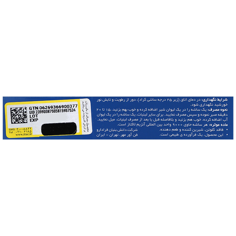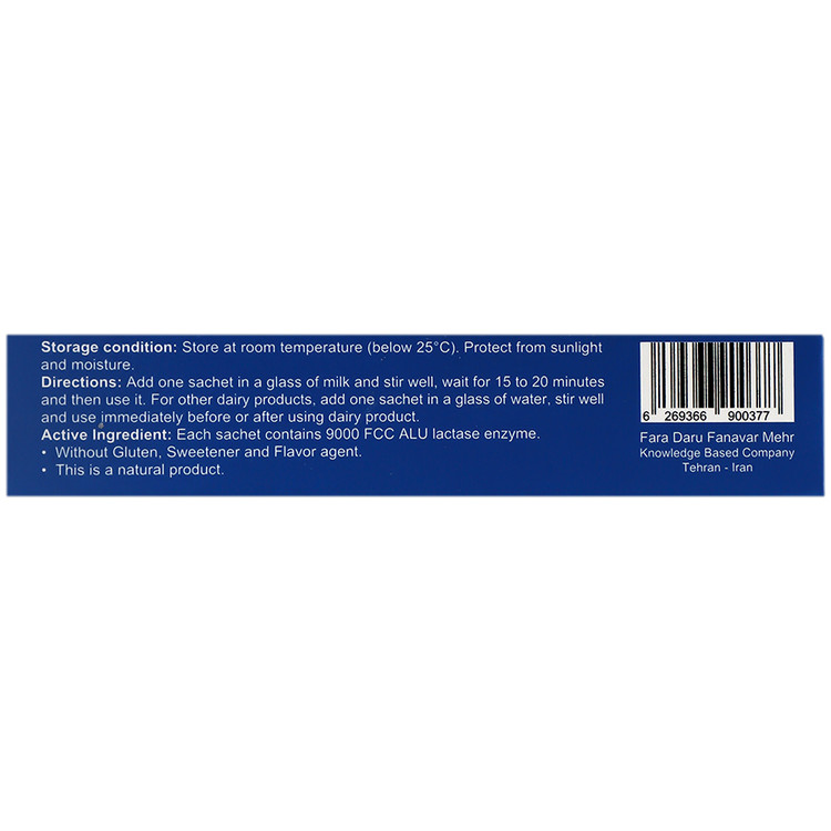 - هر ساشه حاوی 9000 واحد بین المللی آنزیم لاکتاز