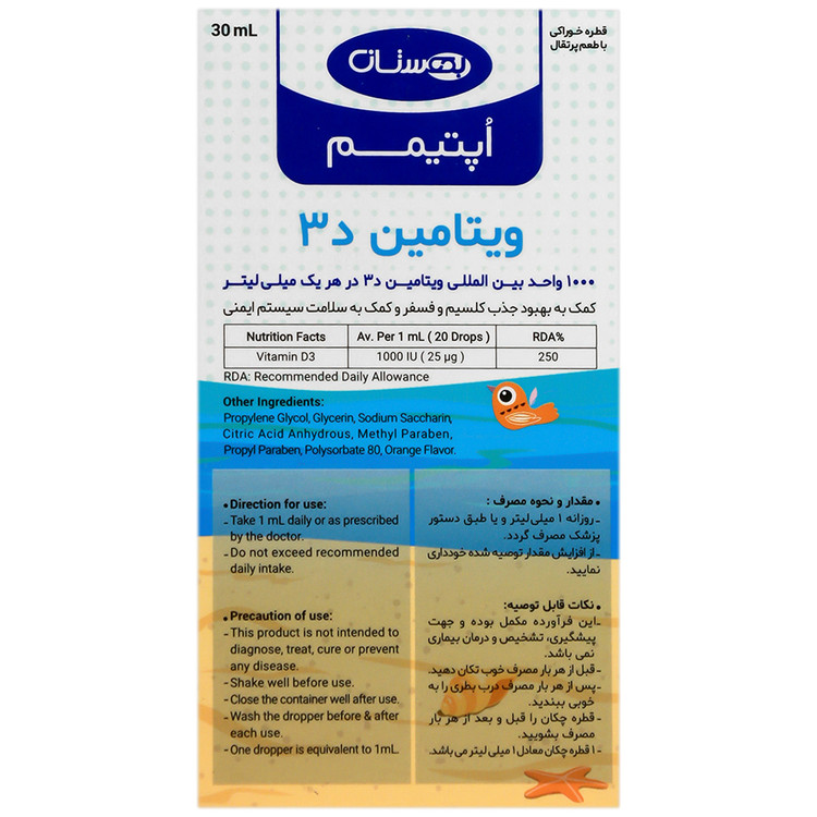 | ویتامین د3 | Vitamin D3 | 1000 IU (25 µg) | 250 |