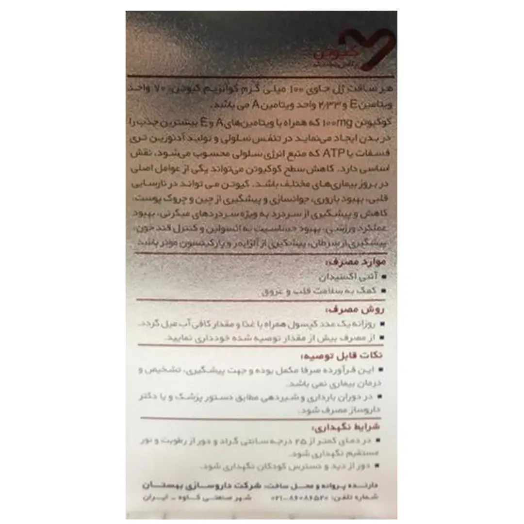 سافت ژل کیوتن پلاس 100 میلی گرم اپتیمم بهستان