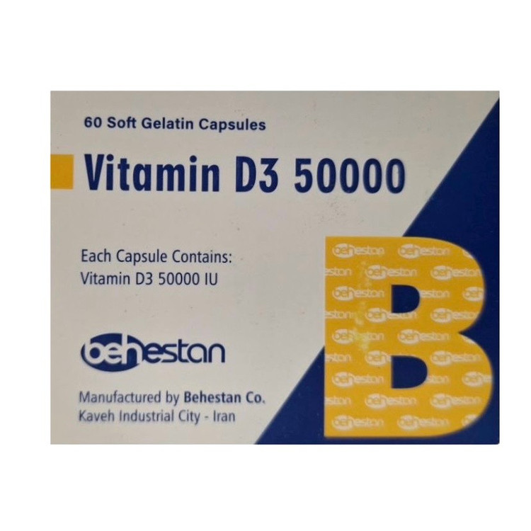 کپسول ژلاتینی ویتامین د3 50000 بهستان 60عددی/Behestan Vitamin D3 50000 Softgel Capsules (60 Softgels)