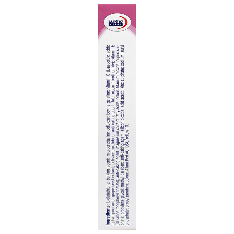 - حاوی ال گلوتاتیون، عصاره هسته انگور، آلفا لیپوئیک اسید، ویتامینهای E و C، نیاسین و مس