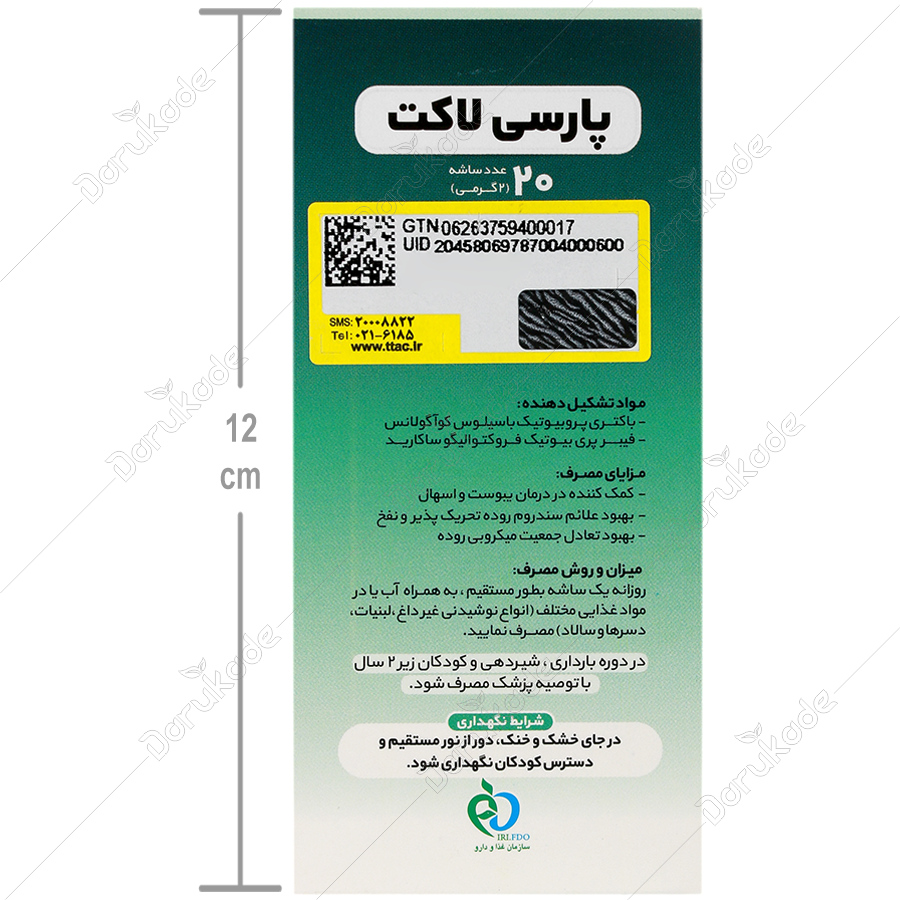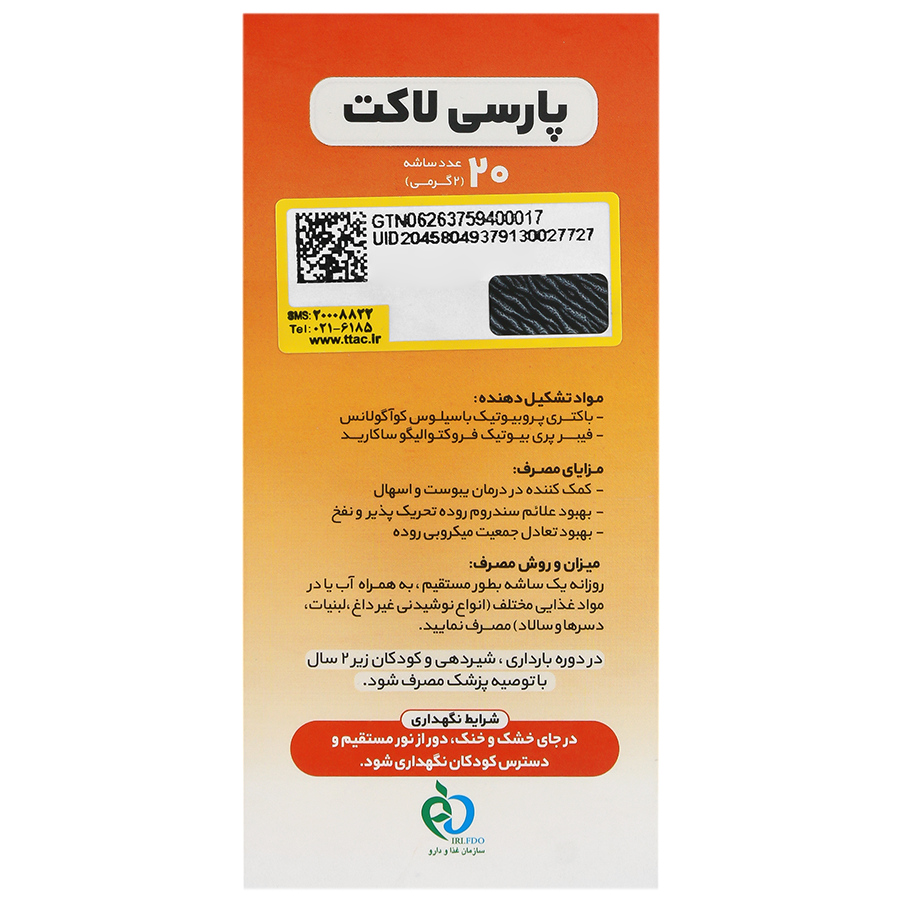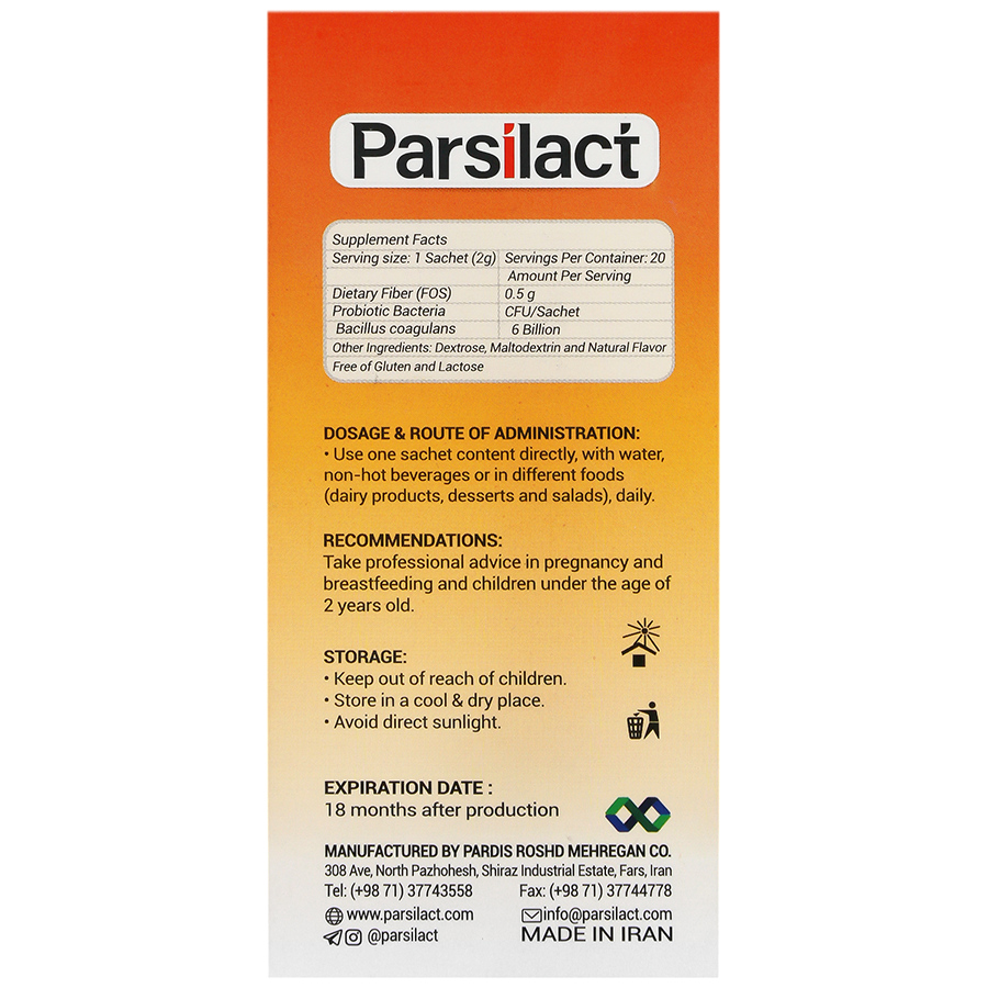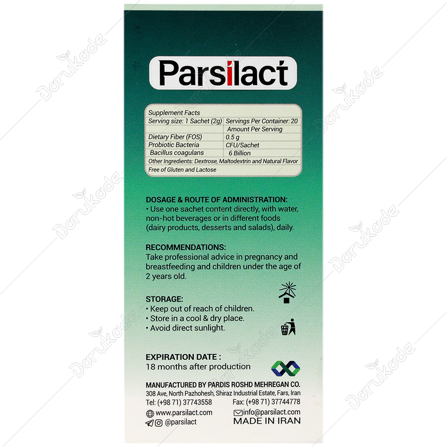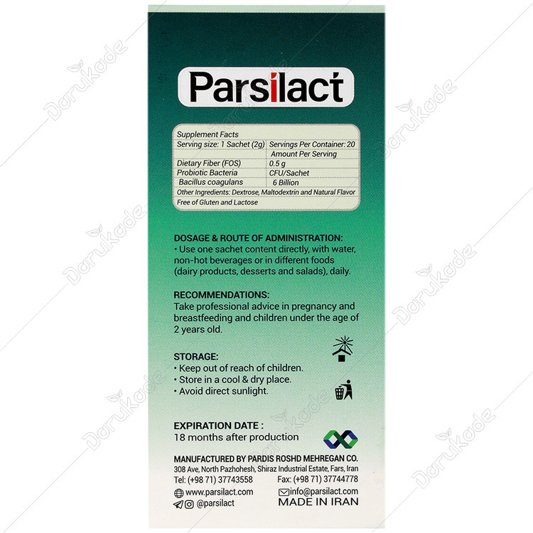 - پارسی لاکت، مکمل تغذیهای حاوی فیبر و باکتریهای مفید پروبیوتیک